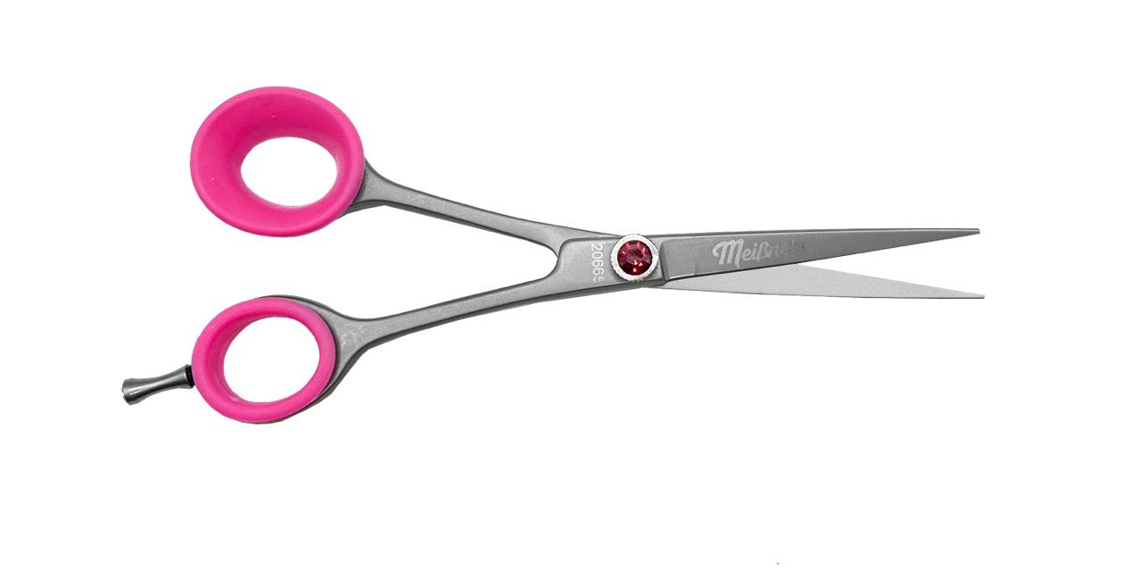 Die Meißner Scheren sind aus rostfreiem, satinierten Solinger Edelstahl hergestellt. Die Microverzahnung sorgt für besseren Halt der Haare in der Schere. Der Fingerhaken ist abnehmbar und die Farbe der Scherenringe kann variieren.