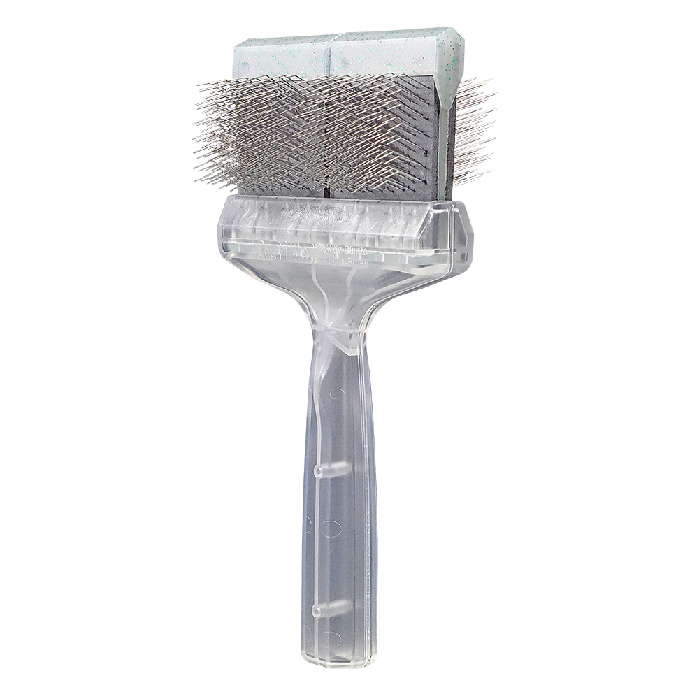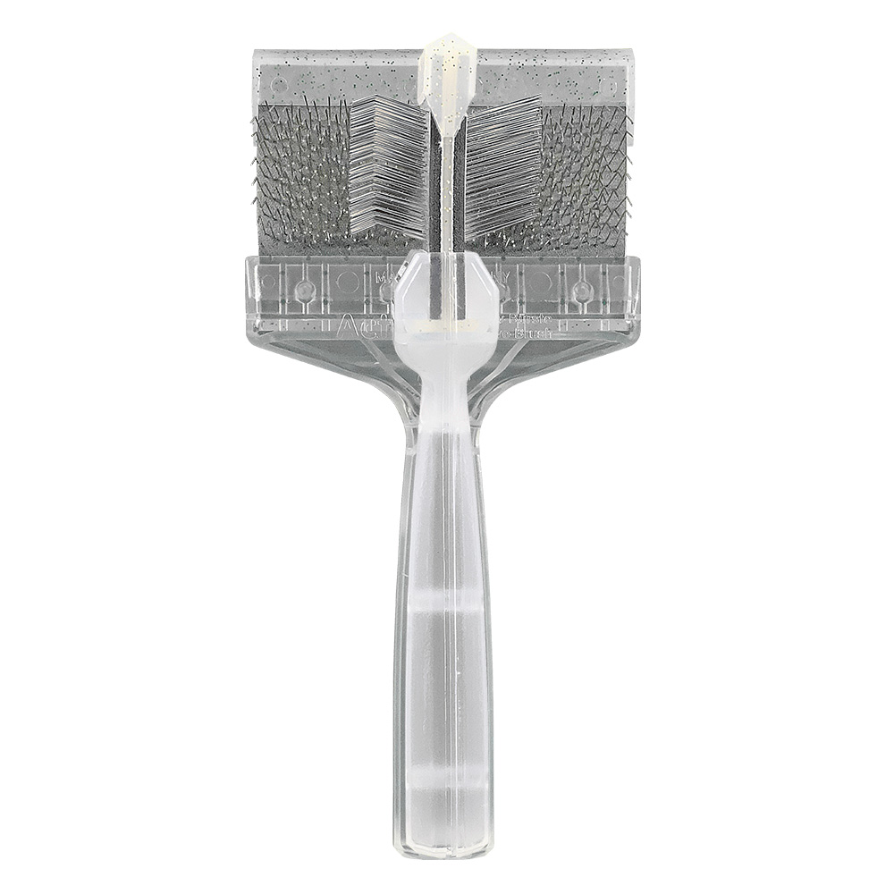 Diese Bürste hat eine Seite mit den üblichen gebogenen Pins, die andere Seite hat gerade Pins, welche sich optimal für das Finish nach dem Bürsten eignen.