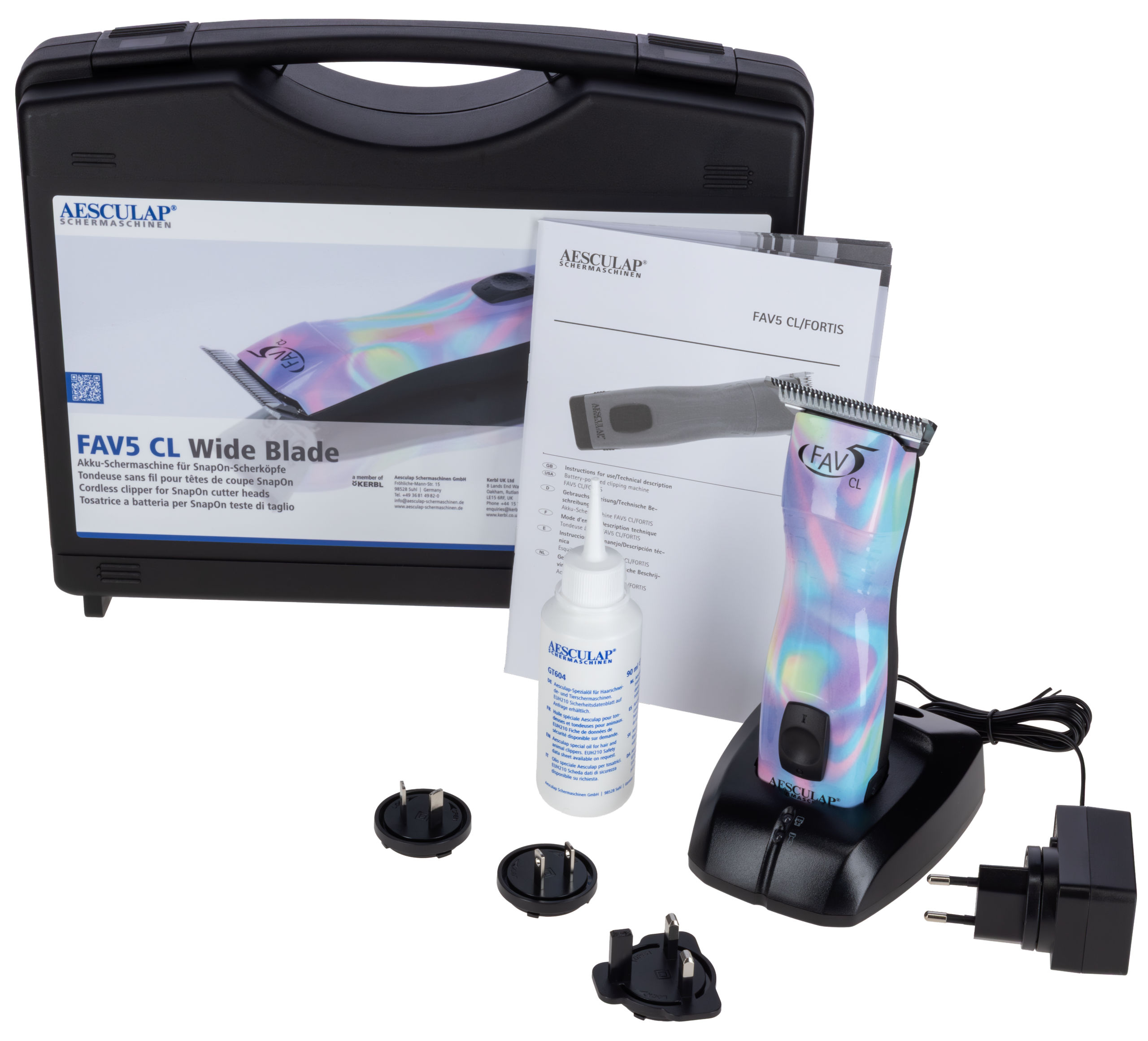 Die FAV5 CL mit breitem Scherkopf #10W für die Pferde(teil)schur in bewährter Aesculap Qualität.