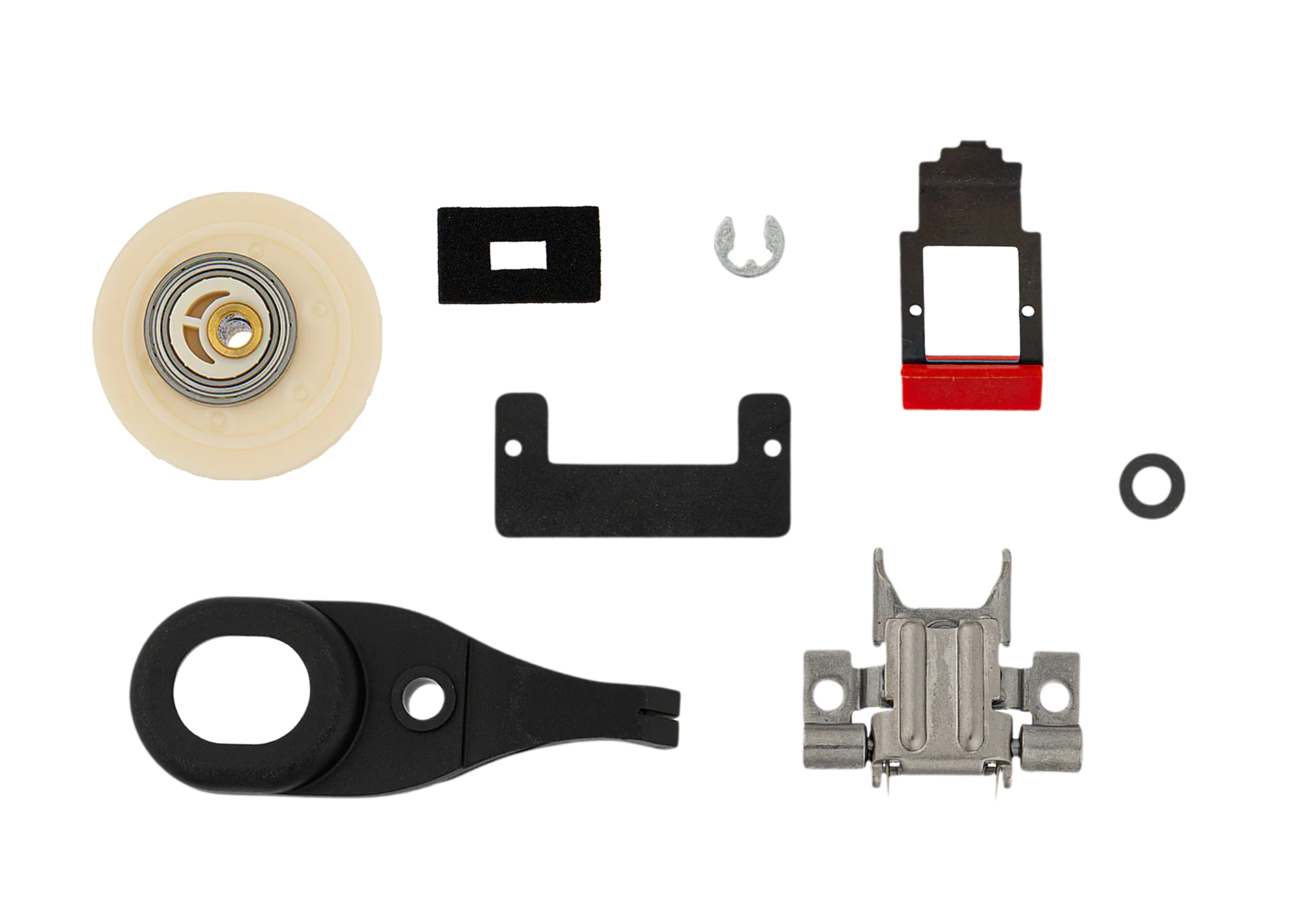 - bestehend aus: 1x Exzenterzahnrad inkl. Kugellager, 1x Schwenkhebel, 1x Dichtung, 1x Gummilappen, 1x Sicherungsring, 1x Scheibe, 1x Messeraufnahme, Messerarretierung rot